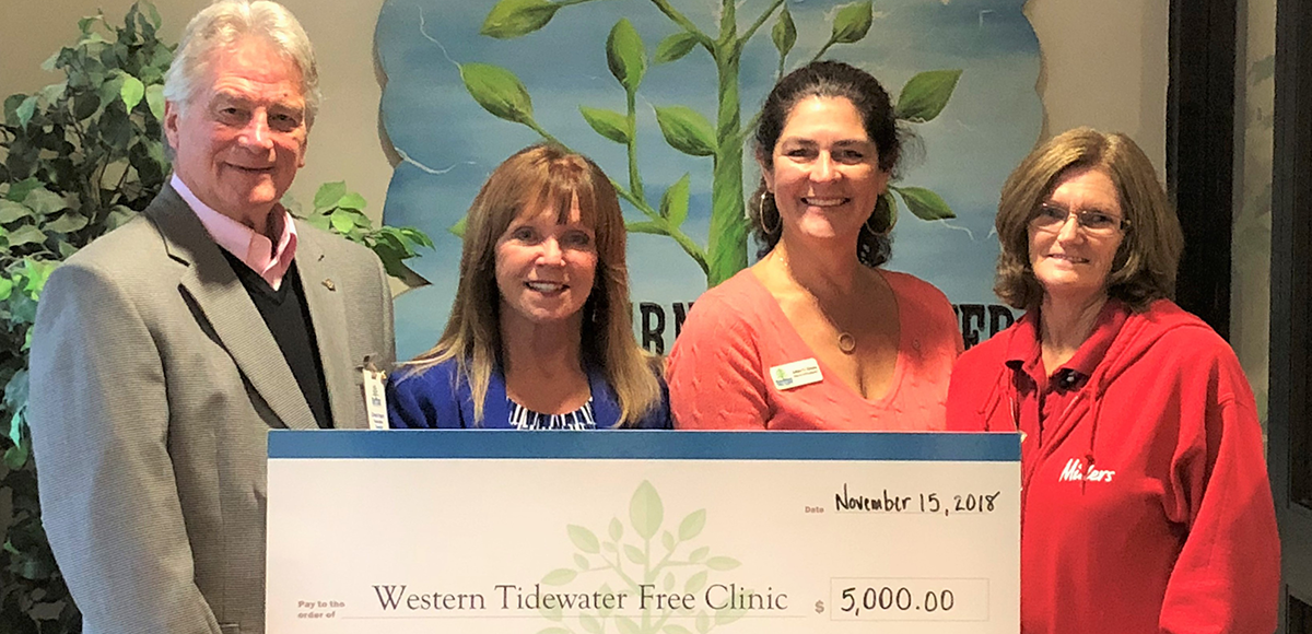 North Suffolk Rotarian Chet Hart with Western Tidewater Free Clinic, one of many local charities that receive direct funding from our Public Event fund raisers.